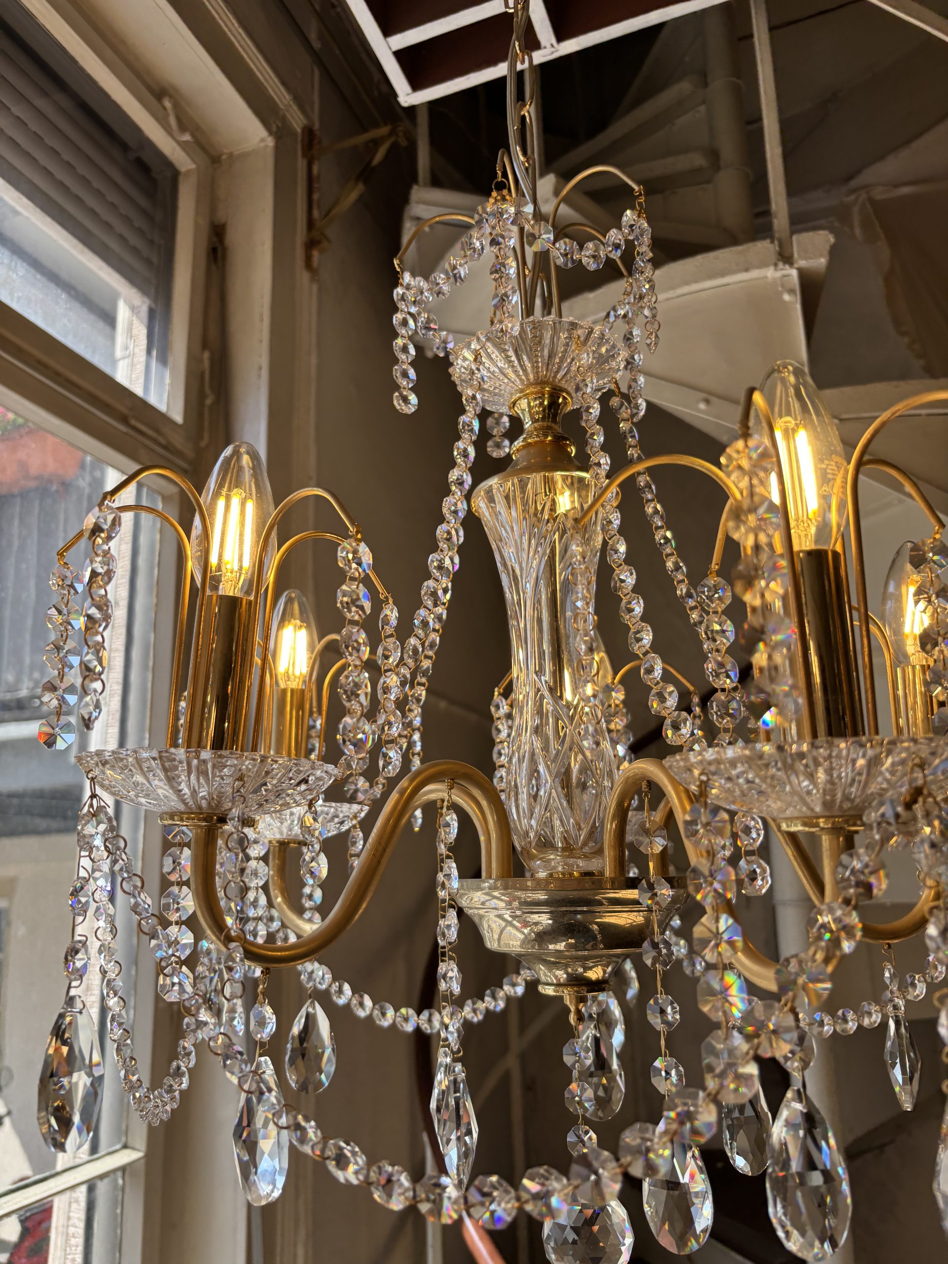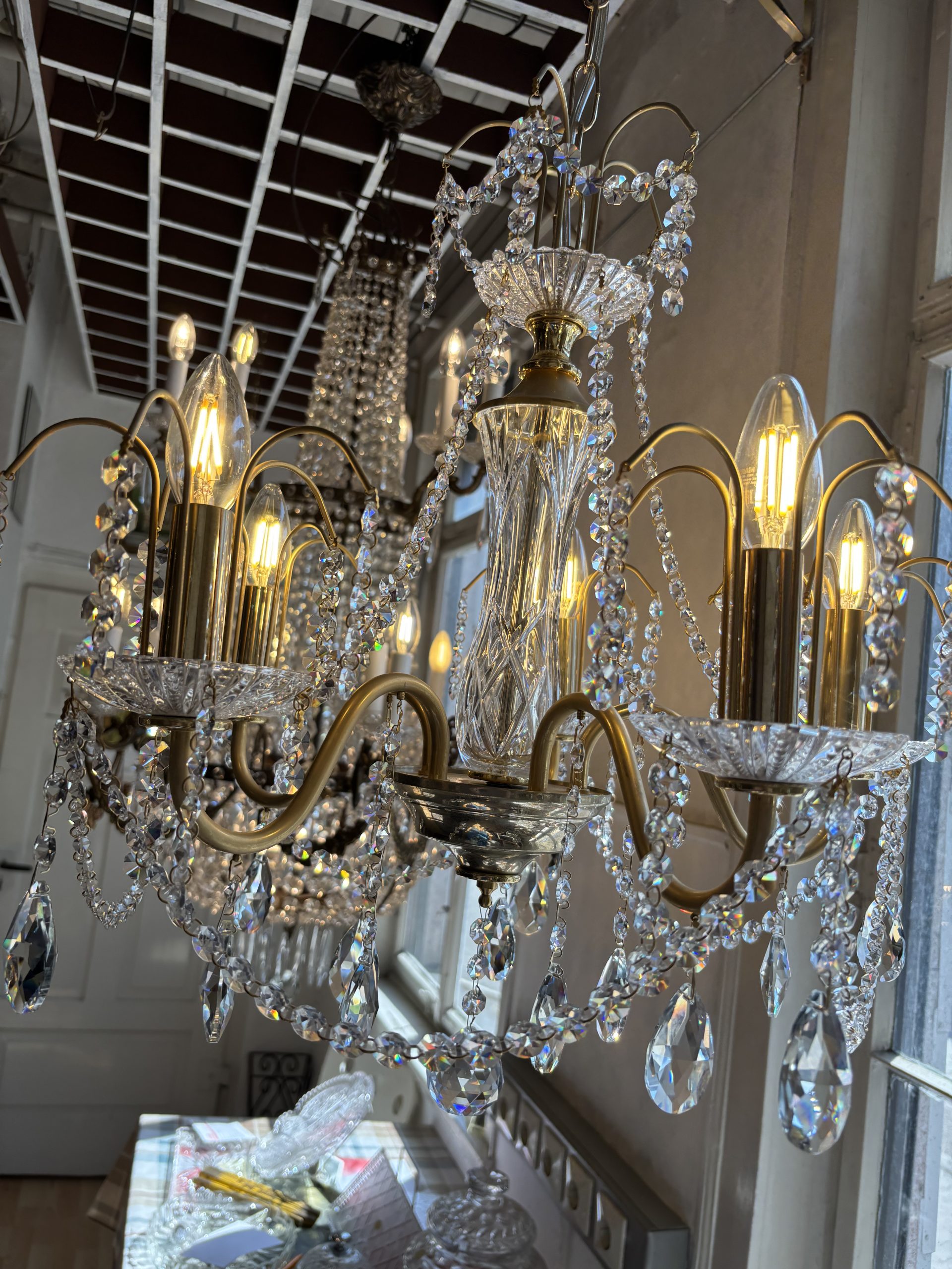 Zeitlose Eleganz für Ihr Zuhause – Prunkvoller Kristall-Kronleuchter Verwandeln Sie Ihre Räume in ein stilvolles Refugium mit diesem exquisiten Kronleuchter aus funkelndem Kristallglas und hochwertigem Messing-Finish. Die kunstvoll geschwungenen Arme, verziert mit filigranen Ketten aus geschliffenen Kristallen, reflektieren das Licht in tausendfacher Schönheit und sorgen für eine glamouröse Atmosphäre – ob im Wohnzimmer, Essbereich oder in einem stilvollen Foyer. Die klassischen E14-Leuchtmittel im Kerzenstil ergänzen das Design perfekt und sorgen für ein warmes, einladendes Lichtspiel. Jeder Tropfen, jeder Schliff ist ein Ausdruck von Handwerkskunst und luxuriösem Design.
