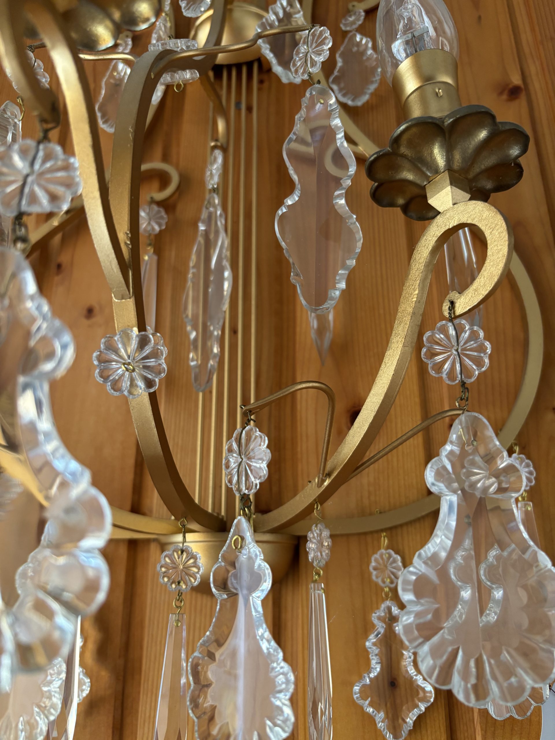 Stilvolle Wandleuchte im Barock-Stil – goldene Akzente & funkelndes Kristallglas Diese charmante Wandleuchte verbindet klassischen Barock-Stil mit zeitloser Eleganz. Das goldfarbene Metallgestell in geschwungener Form bildet die perfekte Bühne für die hochwertigen Kristall-Prismen, die bei Lichteinfall zauberhafte Reflexionen erzeugen. Ideal als dekorativer Akzent in Fluren, Wohnzimmern, Schlafzimmern oder stilvollen Gastronomieräumen – diese Leuchte setzt edle Highlights und verleiht jeder Wand ein Hauch von Luxus.