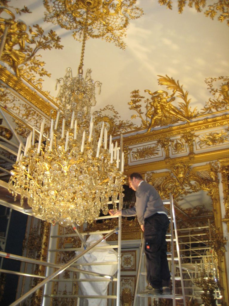 Kronleuchterarbeiten im Schloss Nymphenburg, München