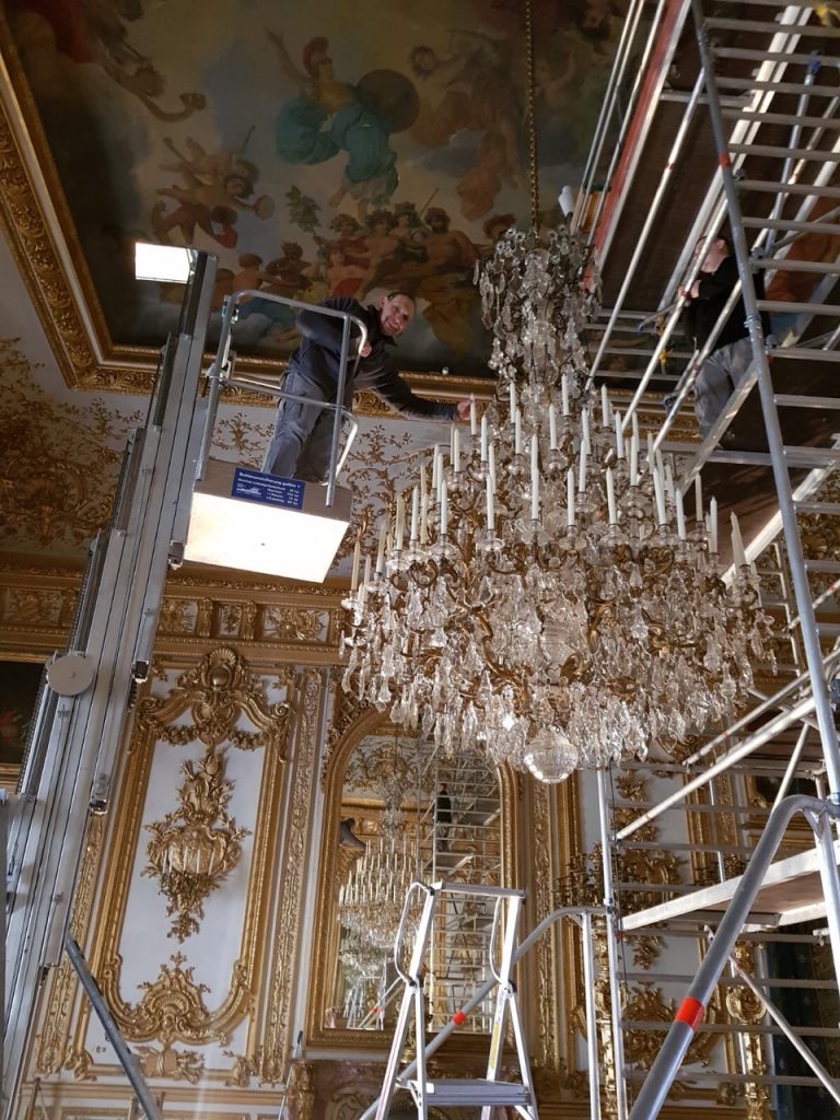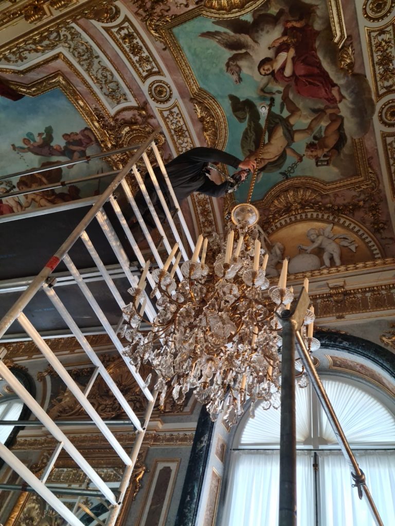 Kronleuchterreinigung im Schloss Herrenchiemsee