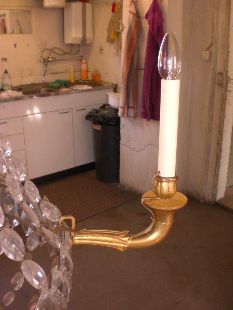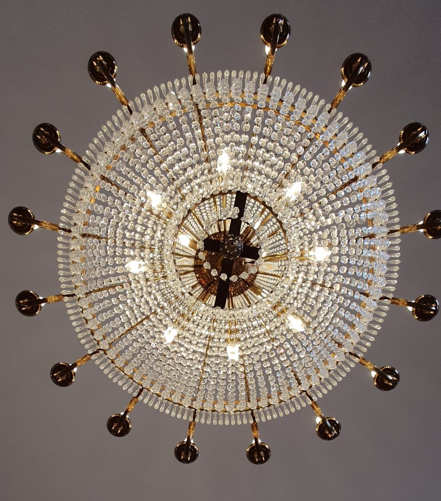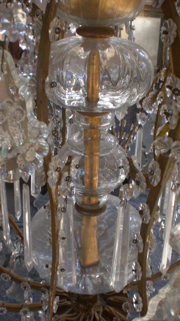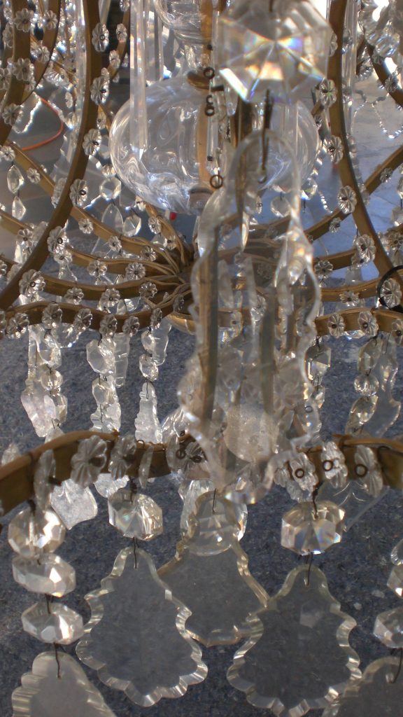 Beschädigte oder fehlende Kristallschälchen wurden originalgetreu ersetzt und fachgerecht eingepasst. Dabei war es uns wichtig den ursprünglichen Charakter zu erhalten. Es sollte nicht nur neu Wirken sondern auch den Kronleuchter würdevoll erhalten.