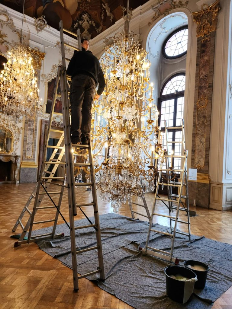 Kronleuchterpflege im Schloss Bad Mergentheim