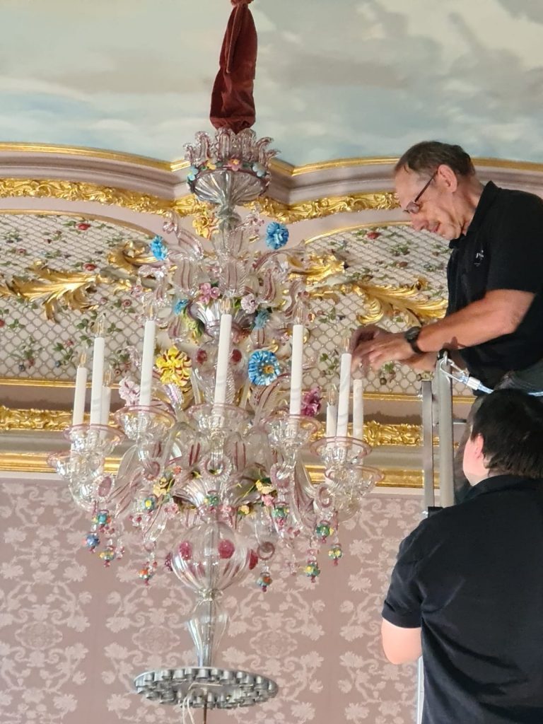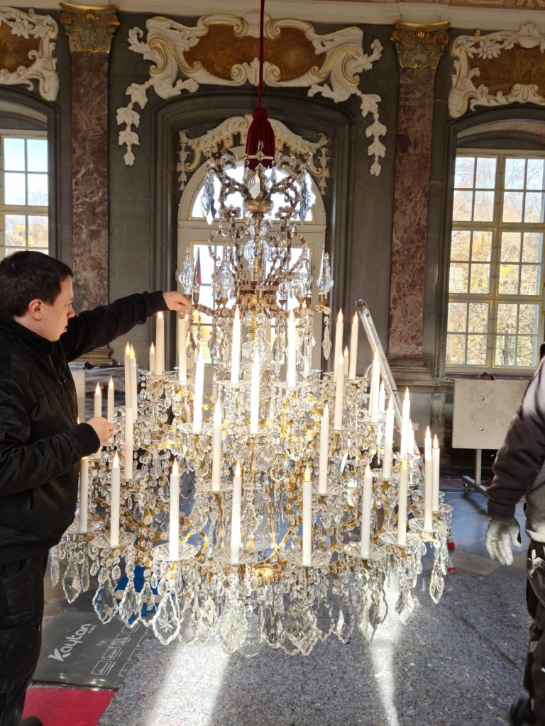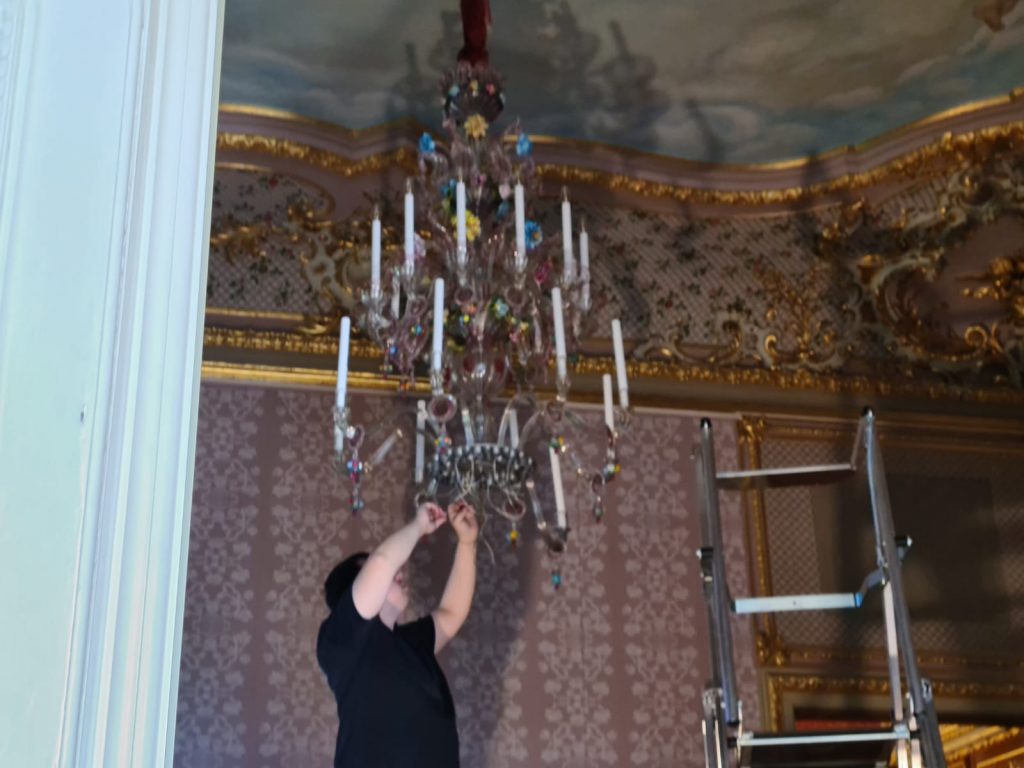 Kronleuchterreinigung und Elektrifizierung in der Residenz Ansbach