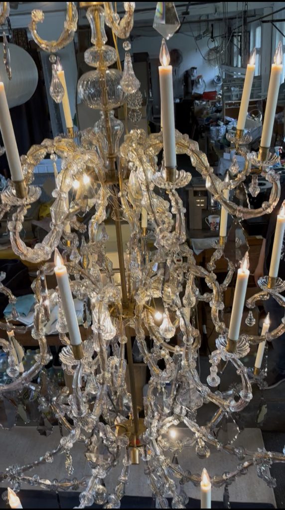 Im Zuge der Restaurierung erhielt der Leuchter zudem neue, stilgerechte Fassungen. Technisch auf dem neusten Stand, optisch der Geschichte verpflichtet – so bleibt die Aura des Originals erhalten und gleichzeitig bereit für ein weiteres Jahrhundert Licht.